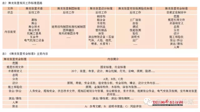 对此,文化部科技司、中国艺术科技研究所、国家大剧院联合启动《艺术表演场所安全技术标准研究》工作,其中有关舞美装置安全标准的思路和主要内容见表2、表3。所以,舞台机械安全需要知己,还要对所服务的对象知彼,更要预估风险。